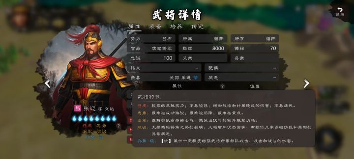 张辽一直都是想用但又不太好用,建议加强一下培养,培养页里面可以加一个召虎什么的减冷却什么的都行啊,特性召虎改成大幅增加,再把技能改成物法双修或者把技能加个势如破竹在带俩回蓝回血的就完美了,徐晃比张辽强点起码还有个兵无常势,但培养页感觉不如张辽,在培养页里面加个亚夫之风效果就是加7统的,在直接给个特性也行,还有徐晃这统也有点低了,好歹打败过关羽,关羽都有94,徐晃才9
