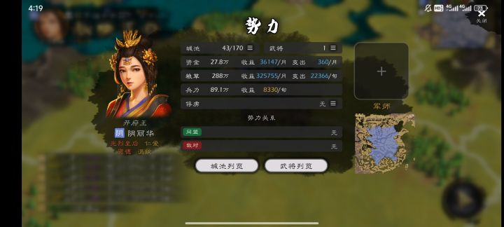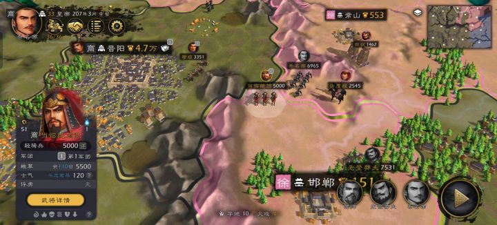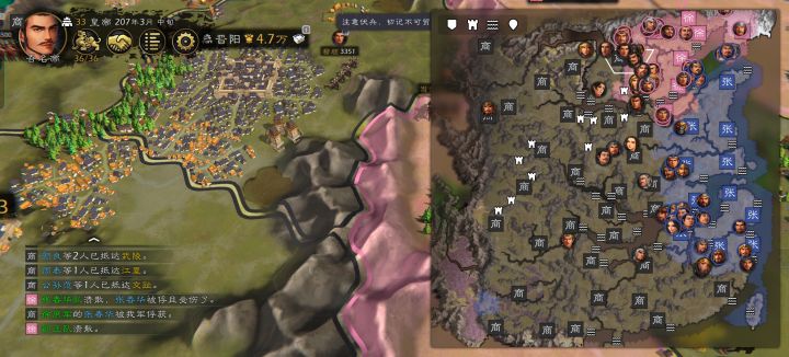 首先这是军团控制,我只控制一个君主城,开两个军团,可以先看我的疆土长江以北都是属于一军团包括成都江州。如果因为缺钱才出的轻骑兵但是后方是怎么运输导致前线城市资金短缺呢?运输资金固定六千,这是否合理?运一两万兵力这六千该出什么兵好?后方不缺钱都是满的。而且发现个问题是运输太远它不运输,情愿出兵走半个地图,为什么不一层层的运输呢?后方运输到中部,中部再运到前线。最后就是出兵逻辑了,你一个无当弓手出轻骑