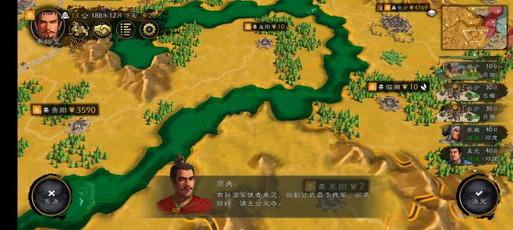 玩了一段时间,发现个问题,电脑把小城割让给我,然而,主城在电脑手里,导致,小城不能箭塔,不能种田不能砍树,这非常不合理,这小城没有自主能力,太程式化了,不符合实际。我建议隶属关系可以自由更改,默认归默认,但玩家操作了,就应该有更大空间自由发挥,小城可以隶属附近大城,可以箭塔种田。