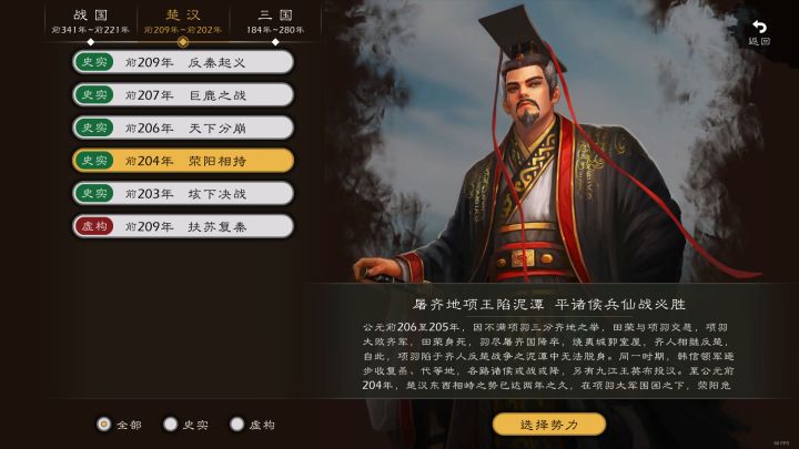 嗨,大家好,我是老帝~全新《楚汉争霸》剧本于2024年7月4日正式上线,本次更新为Steam版本,移动端等待审核后更新,欢迎各位主公莅临品鉴。尚有不足之处,望各位主公多多海涵。我们会坚持不懈地优化,同时也真诚期待您的宝贵建议和反馈,帮助我们不断完善游戏内容。全新「楚汉剧本」登场【楚汉争霸】是围绕秦朝末年,胡亥篡位后百姓揭竿而起,各国诸侯响应,最终致秦朝灭亡,从国家分崩逐步演变为楚、汉两强争