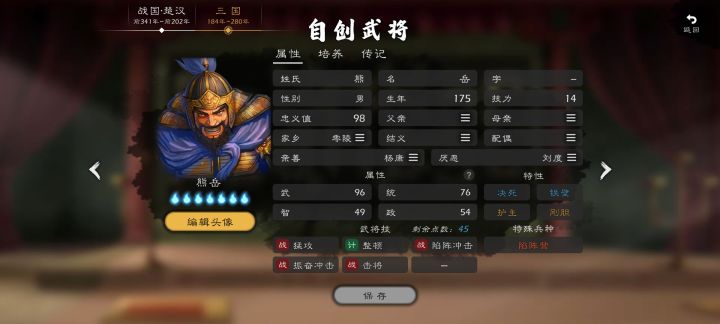 姓名:斋藤朝信属性:武74、统79、智76、政75特性:果敢、勤政武将技:冲锋、车悬之阵、休养生息、临阵奇谋长尾(上杉)家臣,在上杉谦信手下担任城主,十分活跃,同时以勇将和能吏闻名。上杉谦信死后的御馆之乱里支持了胜者上杉景胜,被委任防守鱼津城,对抗柴田胜家。本能寺之变后因年老退休,之后再无历史记载,推测死亡。