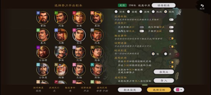 三国本体吕布这个本,绝对是我的最爱了,听说张辽加强了,立马再来开一局,之前也分享过一个档,但是那个档加了神将,游戏变得不好玩了,破局了之后就没有继续打,这个档是本体,没有神将也没有自建。既然是为了体验游戏,那开局跑洛阳这一招就不用了,纯坐牢开局。设定是极限难度,开迷雾,然后因为张辽加强了嘛,挑战一下不sl,能打到什么程度就算什么程度,有点随机性,说实话,不sl大概率打不了通关的,吕布还是有点难