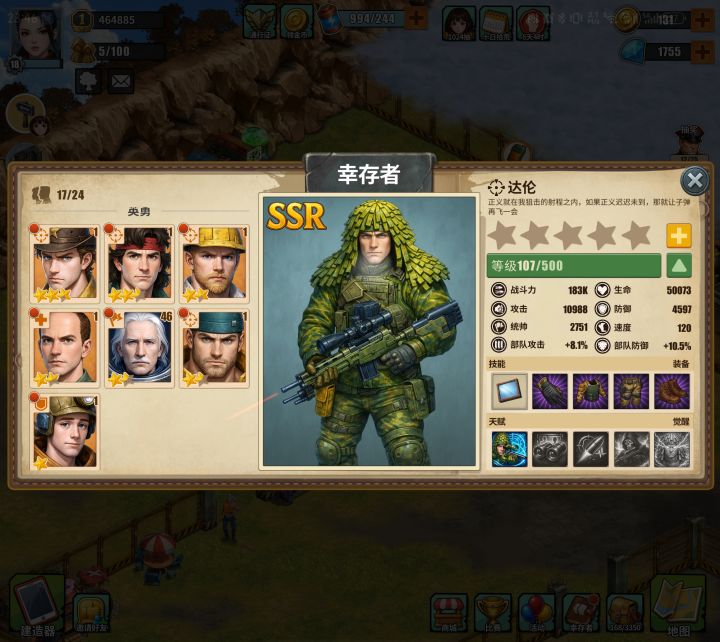 #重建生存营地 0氪玩家玩4天下来攻略雷达攻略,前面单养克里,大概可以用到140层,200+级,后面缺主输出,看个人已有红色优先1星及以上上阵,辅助可以等新人7日的苏,加橙色维他(全体定身不升级)兑换码jb88,ky2025,邀请码144477,领200能量超越20级无法领取