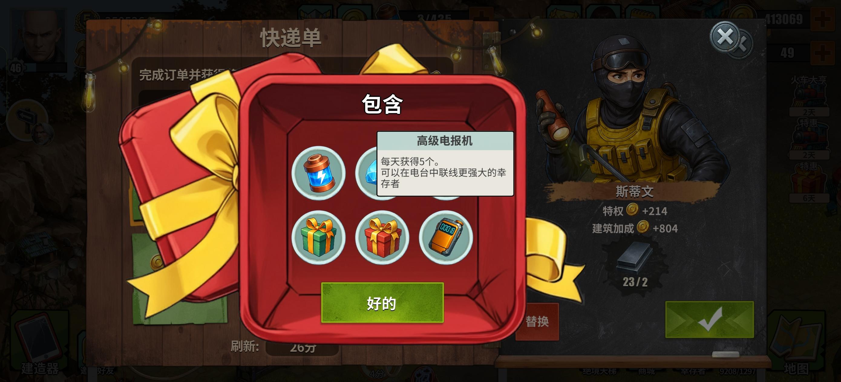 攻略小常识,快递单每天前五次给高级电报机,伙伴们每天一定要完成五次哦。