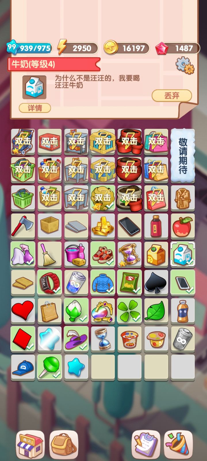 气泡类物品可以也设置一个丢弃,每次都要等它消失之后才有空格继续合成,个人觉得有点浪费时间。另外,前期好多次购买了气泡物品结果又不小心按到了那个丢弃按钮,对于已购买的物品,可以优化一下吗(去掉丢弃按钮)