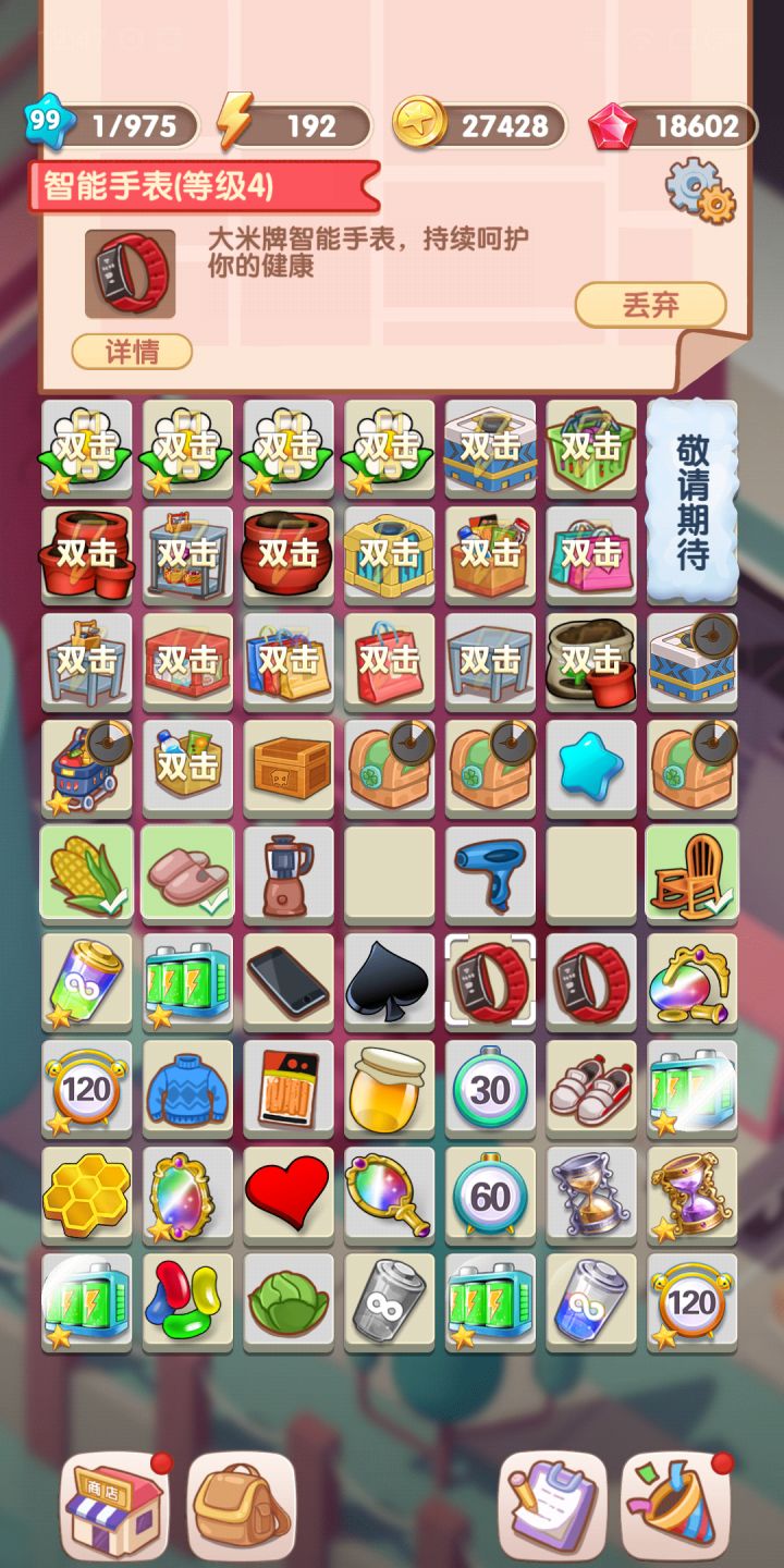 格子真的太少了,建議倉庫可以放多點,合一個高級的,就要占好多個格子。這個很煩惱啊