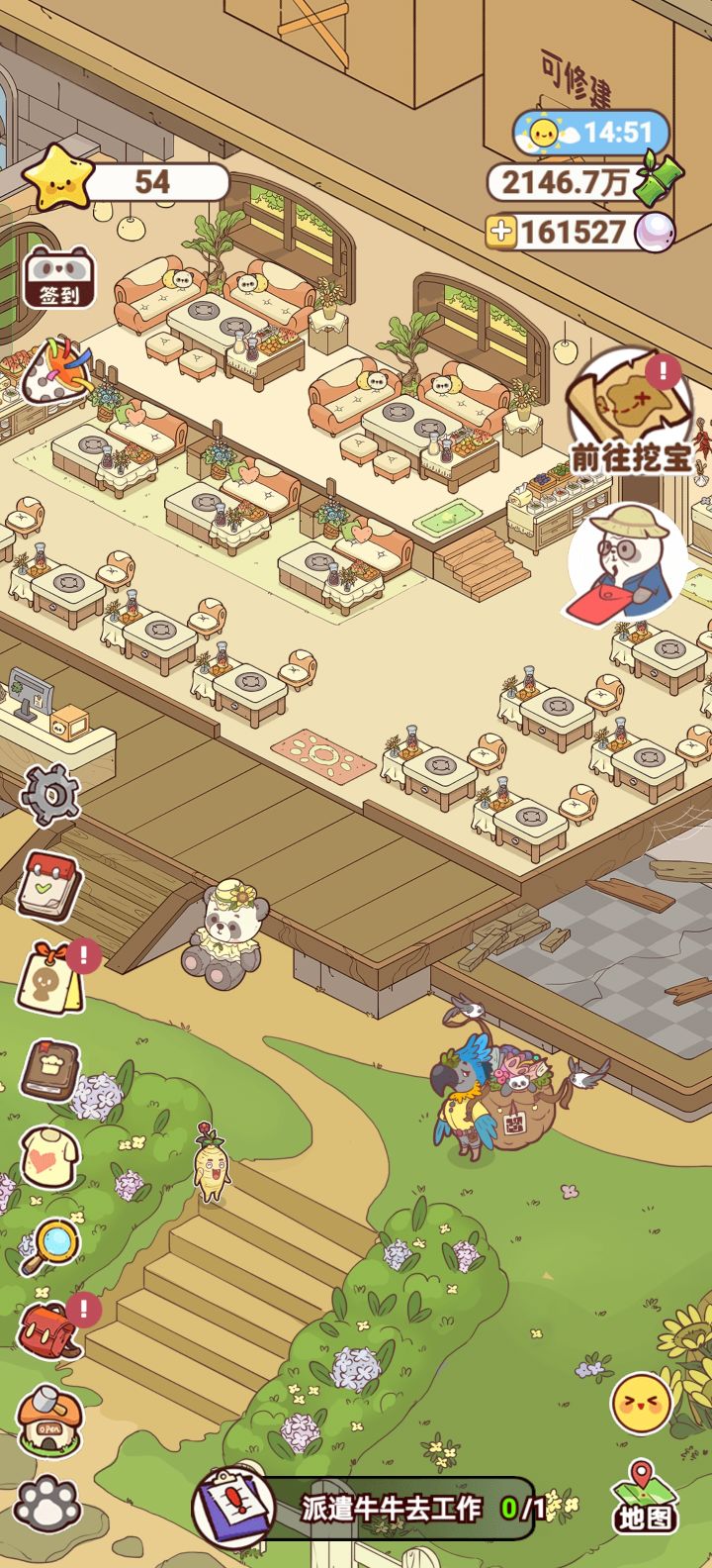 采集的时候能不能灵活点,比如切后台一样会继续或者是可以回餐厅但不影响采集(毕竟也有熊猫哥哥和熊猫妹妹),不然哪怕自动采集也一直傻傻的在森林或矿场里看着采集真的非常非常浪费时间,哪怕是肝也不能这样的肝法啊,那也太浪费大家时间了吧。知道切后台还继续会影响你们离线收益,那能不能就是说切后台十分钟或者五分钟左右自动变离线?一直同个界面看重复的采集动作是真的很无聊的。