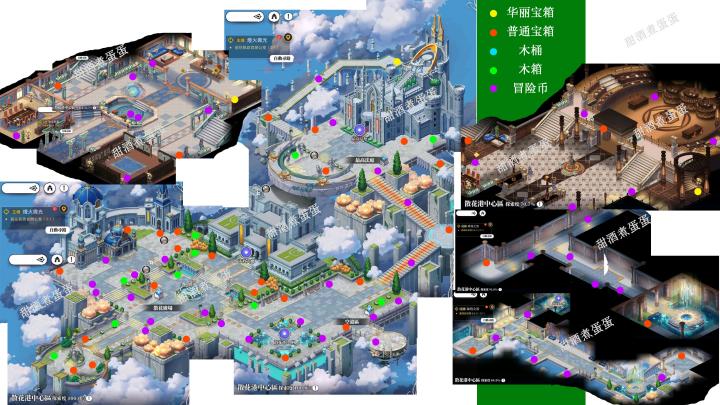 肝了8个小时,我把所有宝箱硬币的位置都标在地图上了。其中任务和任务道具也有标注。非常感谢群友无间的帮助。后面是一些解迷