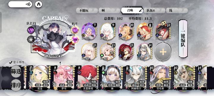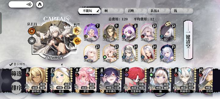 如图2我一开始选的召唤,但是主要练的是罗兰朵,带上罗兰朵,随便推队打到大概六章时,转的湮灭队图1,为了卡12.5费费尽心思图1的队也是稍微练一点就能打完12章精英,我基本都是自动打到,打不了的我才手动(塞西什么的没有可以换成其他输出后来版本更新湮灭12费就能被动,直接把莉亚换成迈尔斯,正好12#游戏种草计划