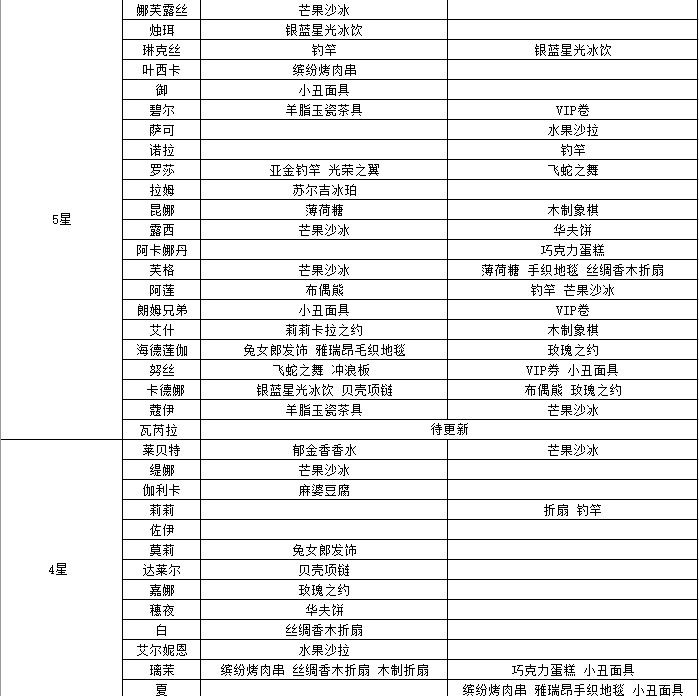 光隙解语好感度赠送礼物表 第二档