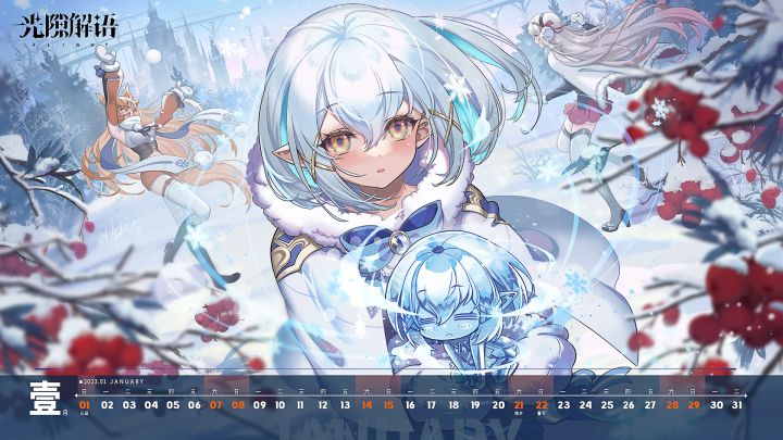 致亲爱的提灯伯爵:2023年的第一缕晨光唤醒了沉睡的诺因大陆。踏入银装素裹的林中,即便积雪未化,也能感受到悄然将至的春意。加入少女们的雪仗大赛中,开启充满希望的、崭新的一年吧!如期为您奉上2023年的第一份月历!为了伯爵大人方便在多场景使用月历,特为您提供了双版本可供保存。——奥维赛斯商会
