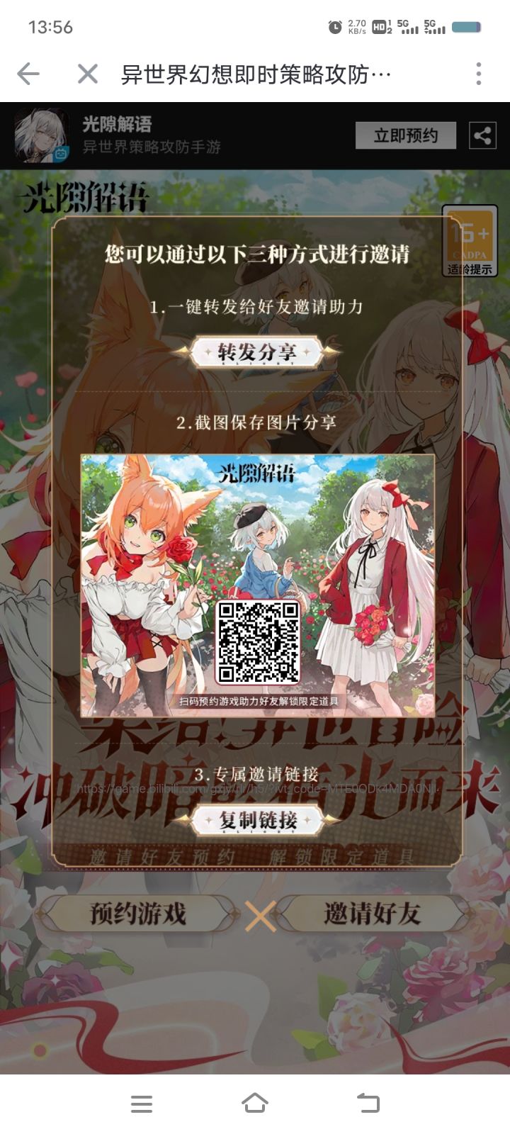 专属预约码https://game.bilibili.com/gxjy/rlr/h5/?gameThemeMode=0&_ts=1694739265839&ivt_code=MTE1MjE2NTgxNTQ1OTI4Mjk0NA%3D%3D&sourceFrom=0