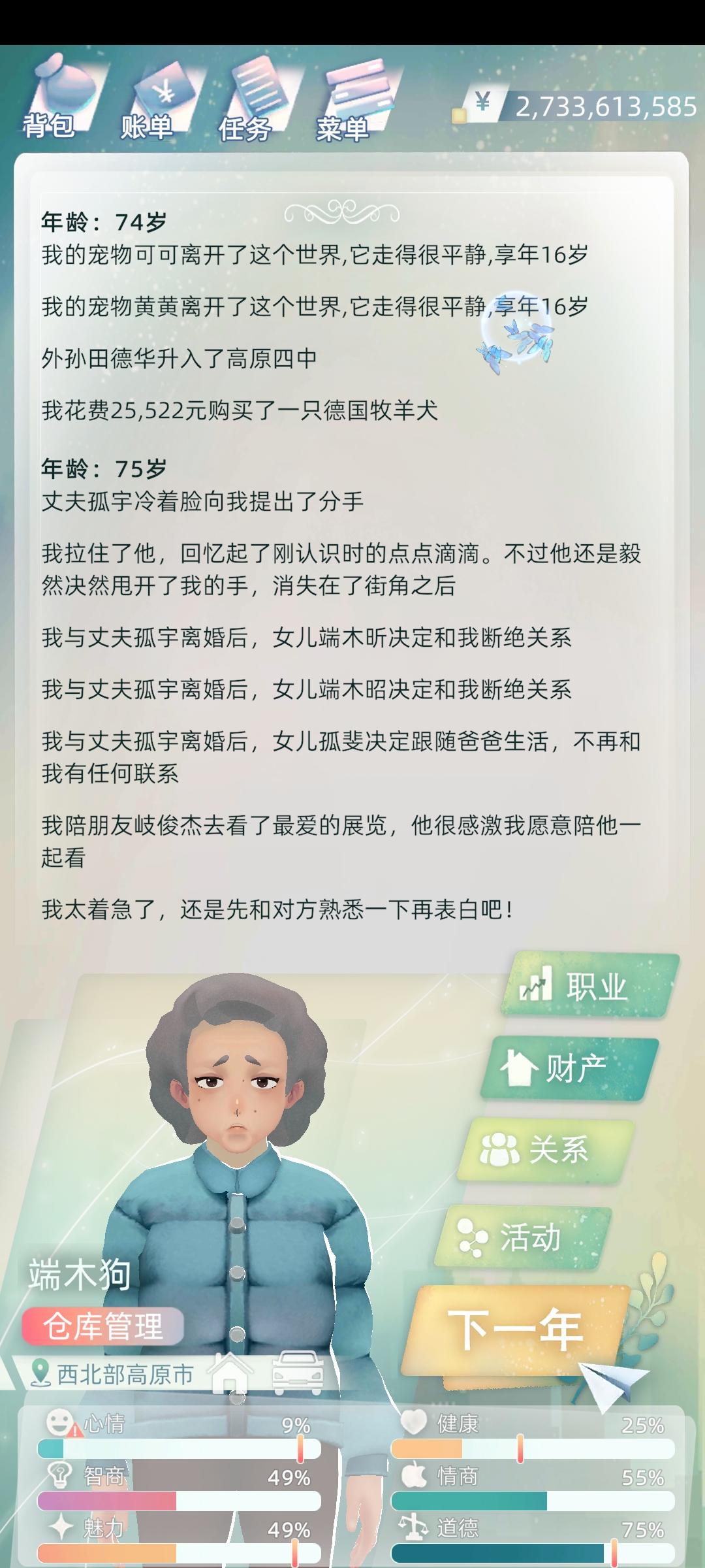 是古代人生和第二人生的老玩家了,很喜欢这个系列的游戏,所以一直很期待当代人生。玩了有一段时间了,整体还是不错的,就是可能还不是很完善,玩久了会觉得可玩性降低,但是每次更新后可玩性又会提高,然后玩久了又会再降低,循环反复,希望官方能尽早更新更多玩法(有看到官方说后续还会增加很多新内容,在这里表示很期待,也想说句官方辛苦了~),同时也减少bug的出现或者是及时处理bug(毕竟每次更新新bug都会有很