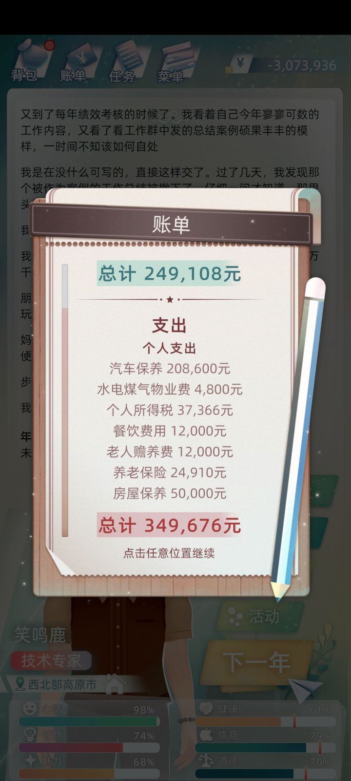 等我开始新的人生,发现我一个16岁高中生,每个月有个20万的汽车保养费???可能是第一世挂了的我留下的豪车保养费。但是那辆车不在我上学的城市,在老家!!可是每个月我都负债20万(现在我都39岁了,负债已经320万了),我家都不能回,想买衣服也没钱,还是个程序员,每次熬夜加班回来后,就去免费公园散散步。