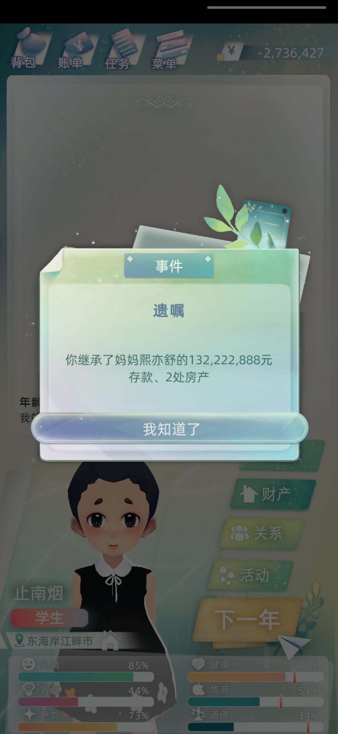 想报个bug,我将所有的遗产都给了外孙,去世以后外孙上高中,然后过去了几年,高中都没有毕业,也不让我高考,现在就一直在学校耗着,咱说重开是重开了,你得让我毕业啊…都快30岁了还在读高中说不过去了吧