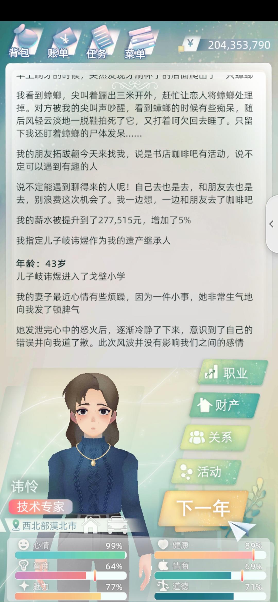 出bug了,初代男性,死后继承给了孙女,孙女性别默认男,任务也没有刷新