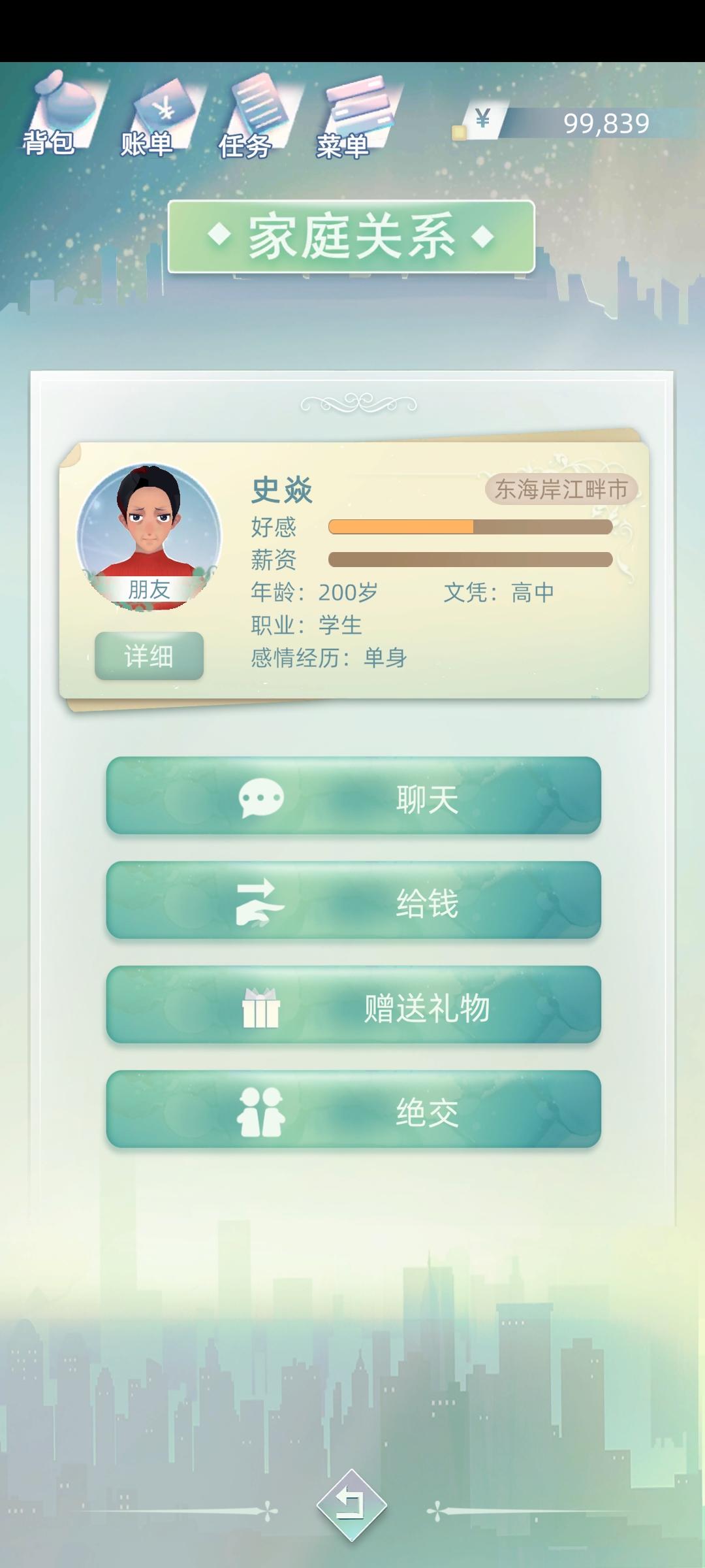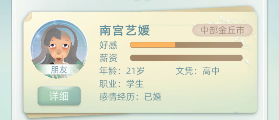 名称错乱皮欣怡是我上一局的朋友的名字,我现在是重新开始的新人生,就一个朋友,叫水瑜。