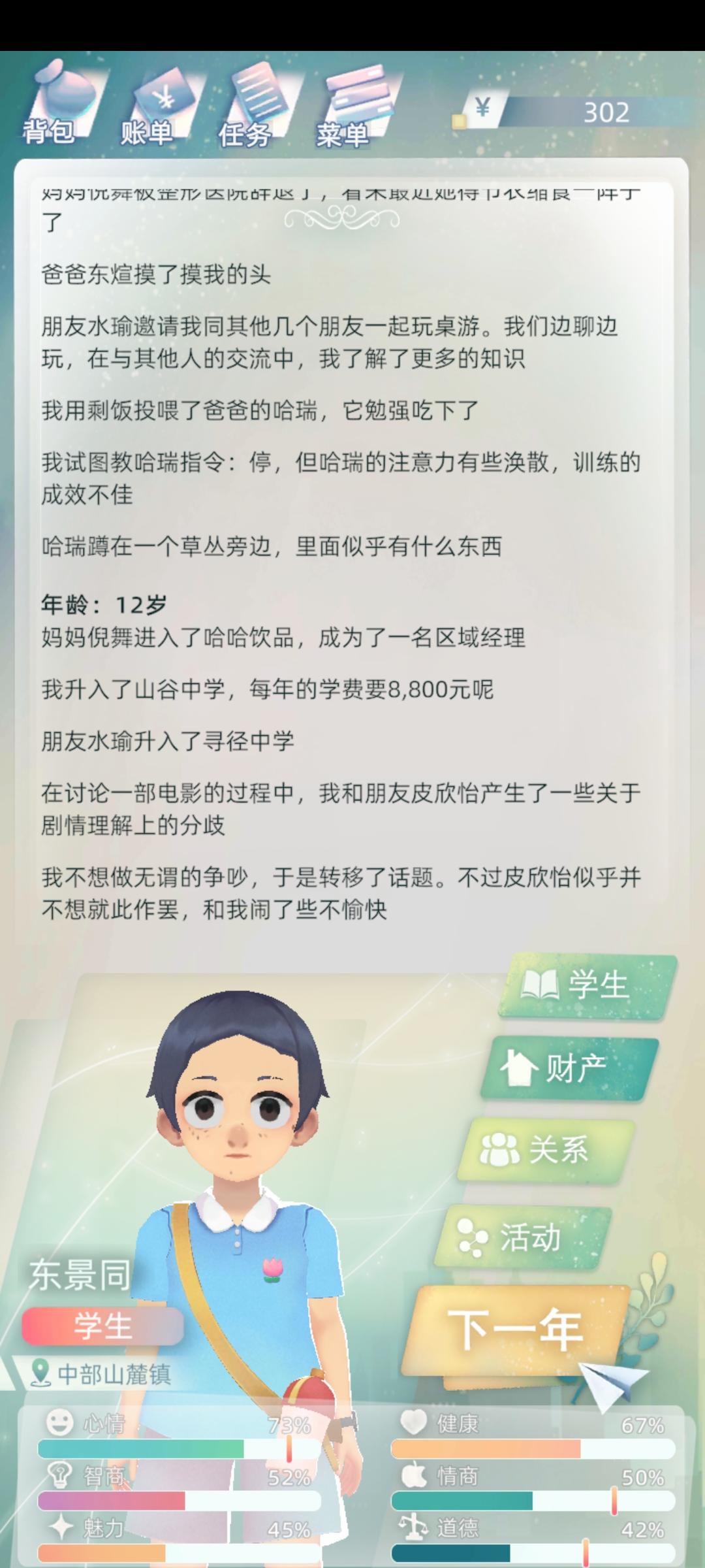 上一代因病去世,继承到儿子,结果一直点不了下一年,每次都得退出去再进入,而且都7,8岁了,还显示幼儿