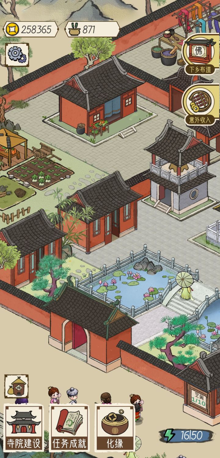 完了挺久了,对游戏的建议。广告问题,现在觉得。广告不要加在所有消耗时间的事情上,你们广告那么少,根本就不够。既然要佛系,就应该取消一些设置。种地化缘,工坊,包括钟楼那些事件完成后,自动回去休息,这样比较现实一点,佛系玩家也佛的起来,然后奖励收益可以广告双倍获取。基本上只要做到这点,就会少很多吐槽,既然你要佛系,就不应该现在这样,佛系玩家想佛系吧,几分钟都要看一下让僧人休息,看完以后又要等几分钟还得再派出去,太蛋疼,体验简直恶心透了。