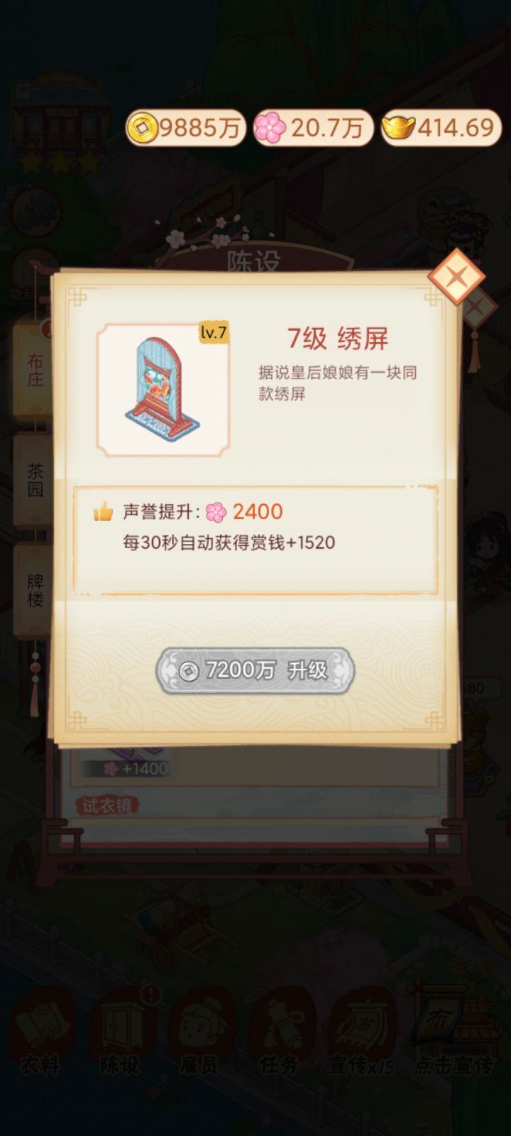 快修复一下那个秀屏不能升级的bug吧,不然有一个人物不能解锁,需要8级秀屏,我就差这一个了,麻烦尽快修复。差一个集齐104了