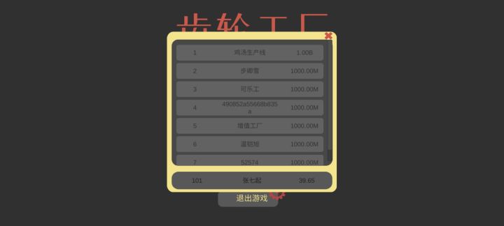 排行榜里的分数是什么意思?没有说明这个分数的算法,还有一点就是每级齿轮的工作效率不明确,只知道它等级提升了,并且商店里的齿轮越高级越坑,升级商店不仅花钱还没任何用处😂希望整改一点,越高级的齿轮它的月耗和升级费用还有保养之类的都会指数增加,但是工作效率好像却增加得很慢,到后面的等级就不赚钱了,都是在亏钱😂😂😂反正我现在最高只能每个月净利润2k,平常都只能维持在1.8k,我这干了十年才不到二十万存款😭