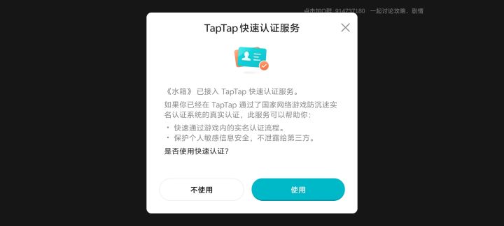 是下载之后打开发现实名认证过程有问题。下载点进去它弹出一个说是在要游戏内进行实名认证?总之就是说接入实名认证系统了。一开始没看到,用的是taptap里面已经设置好的实名认证,然后又说taptap里面的没有实名认证,还是有问题什么的,没有完成。第二次点进去我看到前面说的那个字幕,说是要在游戏内认证。后面我实名认证我都交了,又没反应了,卡在那里点不动,后面我把它卸载了。直接在taptap里面点击开始游