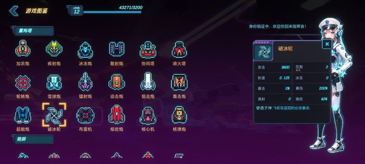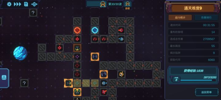 疾射塔难度9攻略输出:疾射塔(双火远程+暴击/超限打击)+棱镜辅助:疾射塔(环状基座+极寒子弹/各种冰冻)前期先铺路,游戏有一次死亡保护,第一波boss打不过也没事,然后把双火給凑齐,剩下的一条刷到暴击的都可以用。没有棱镜的话,多上点冰冻词条的塔也可以过。