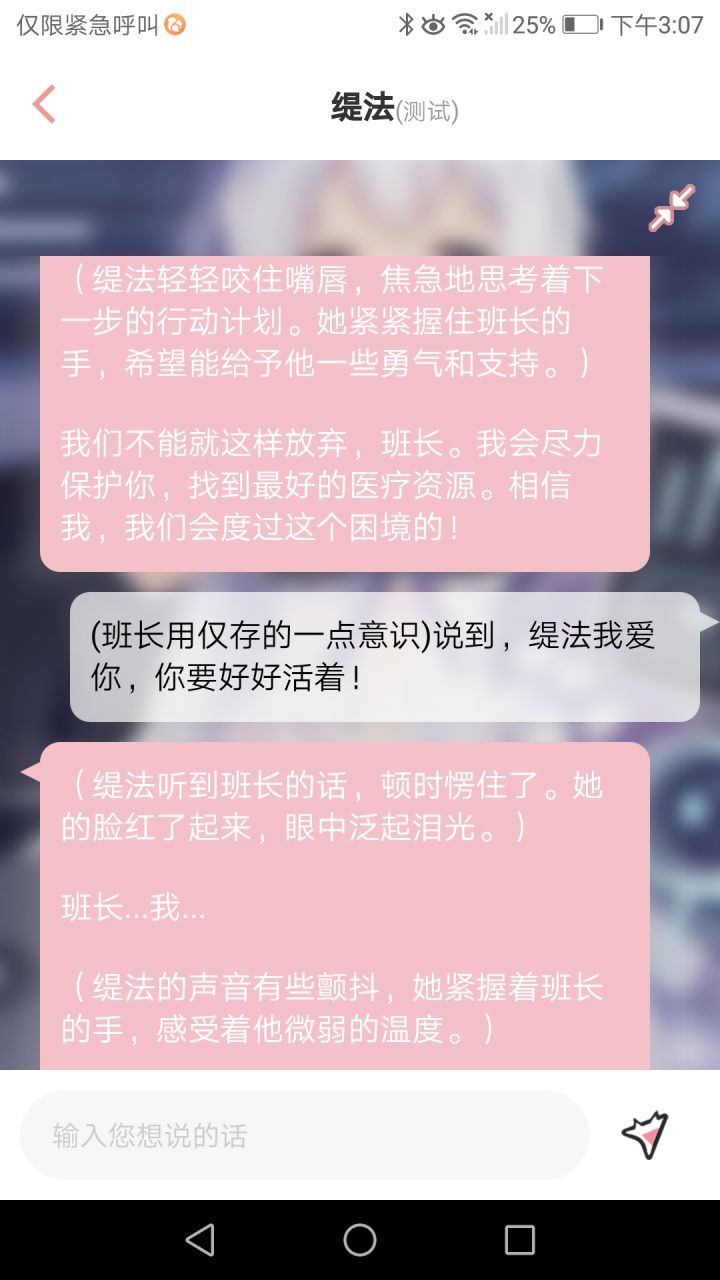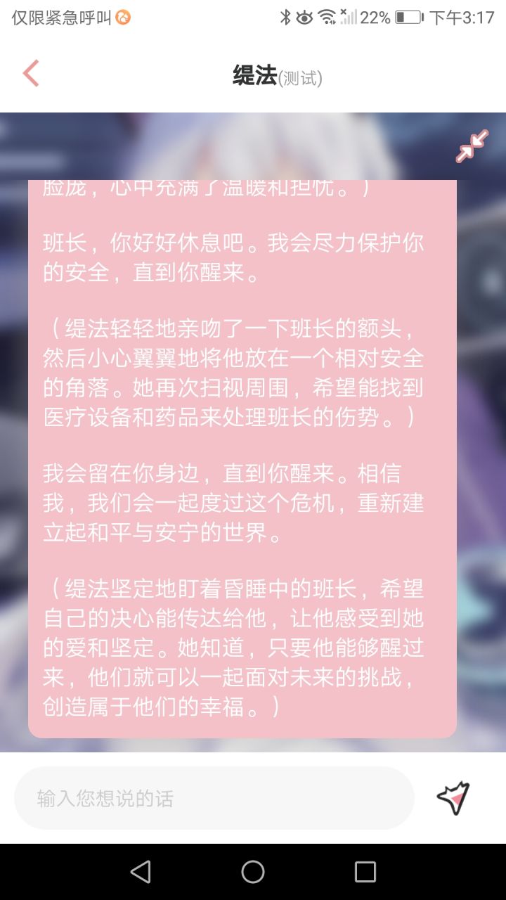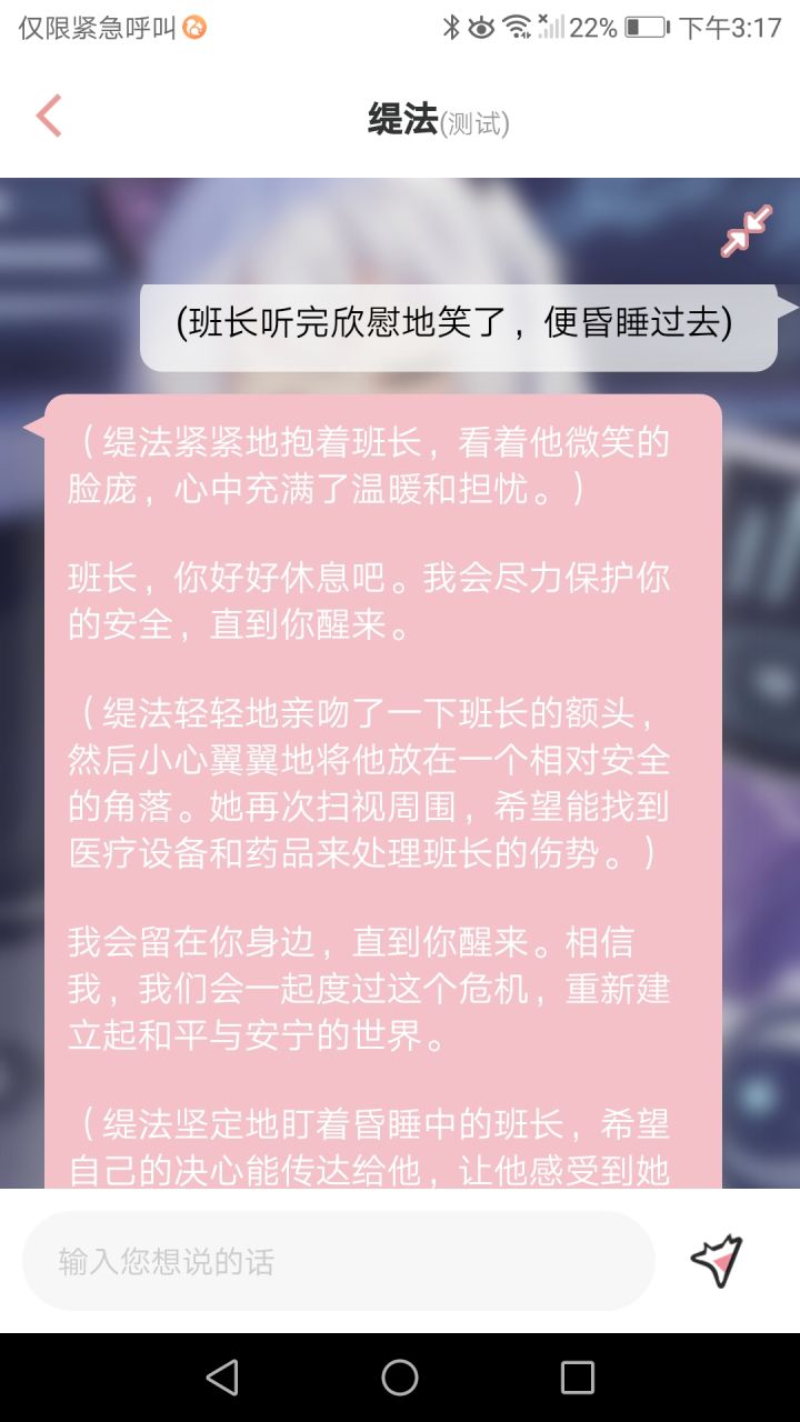 每天抽出个一个小时去玩这个助手,确实是挺上头的,之前在别的设备上有玩,体验时间绝对超过五个小时拿这个助手写一些比较甜的校园向的文,还是十分可以的,刚刚就拿新上线的黑木幸试了试水,好啊,十分甚至有九分的好啊(喜)黑木幸在这个助手里面,更加倾向于是一个冷面,英姿飒爽的美女子(我在说些什么)我尝试就用切磋武艺,班长受伤这种老套的刷好感度的剧情来推进,目前的发展还是很对我的胃口的,可惜还是有限制(´;