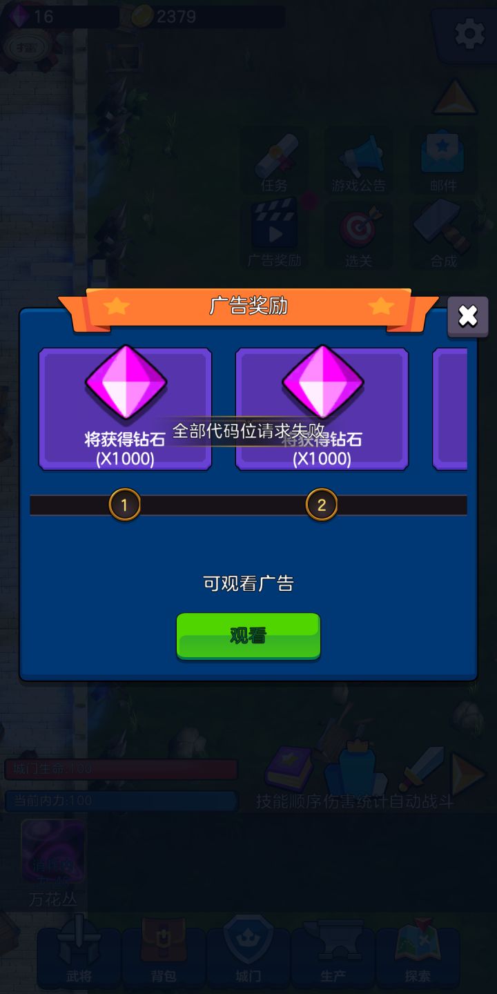 全部代码位请求失败是什么情况?一直看不了广告