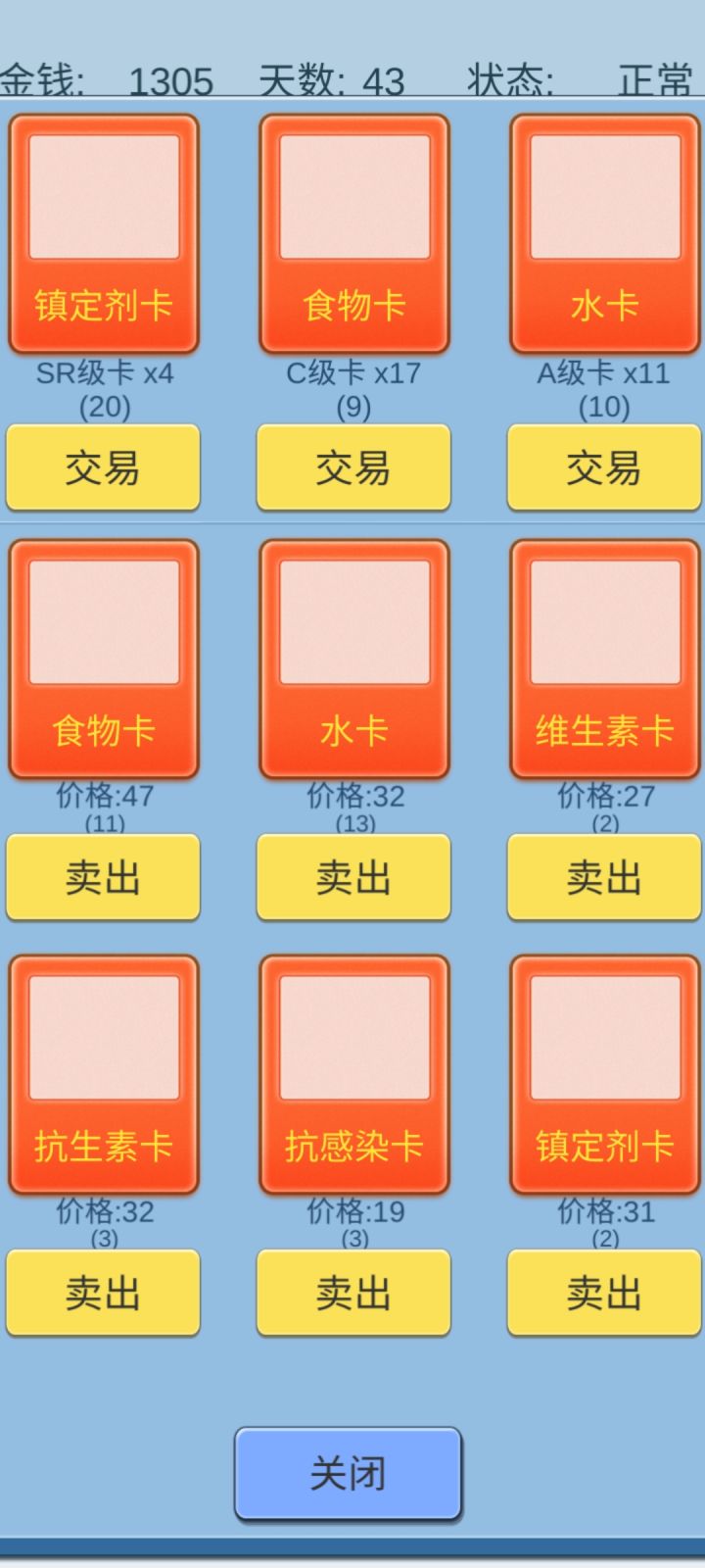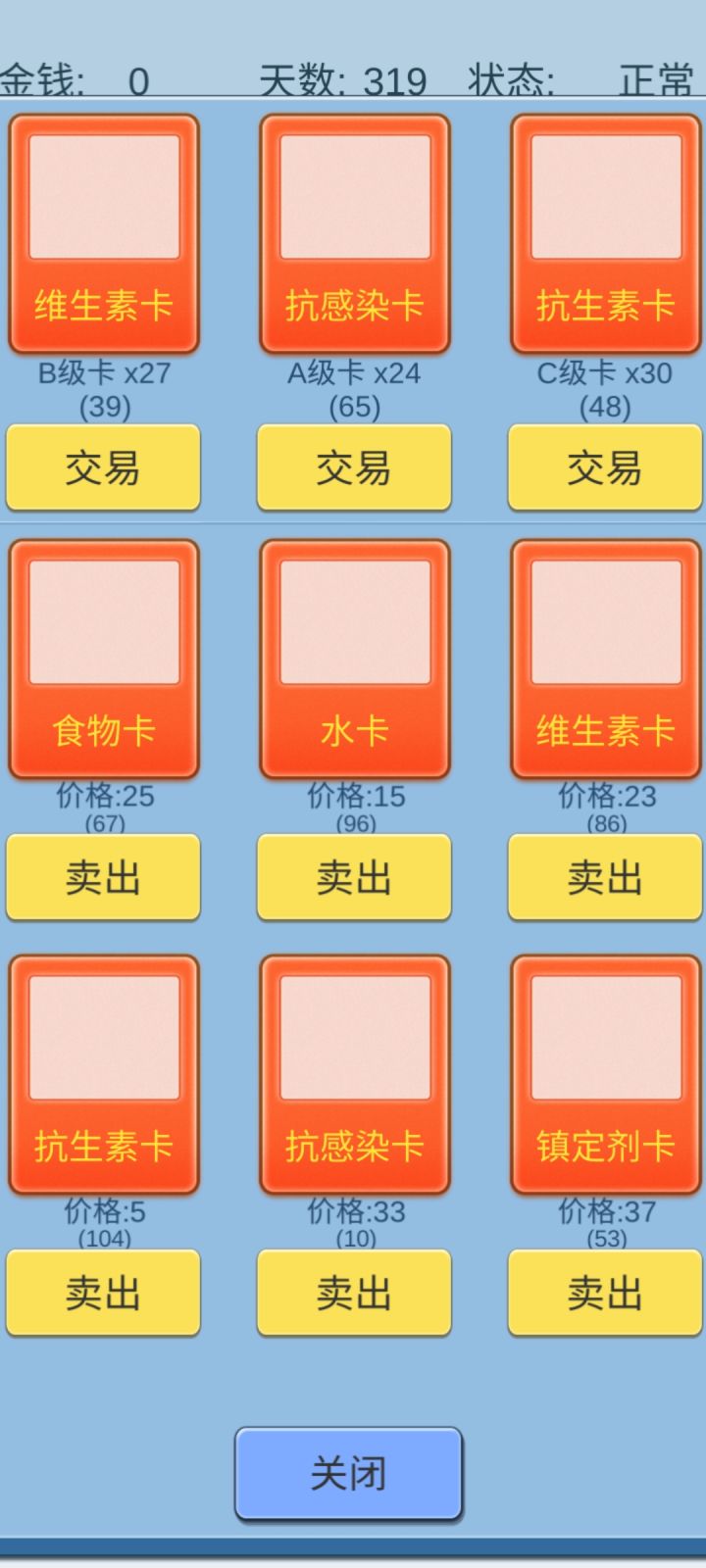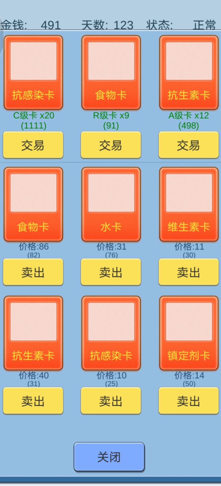商人第一忍者生存者精神强大并列第二商人通关必备后面刷钱药物40左右就能卖 食物卡60块钱的时候卖一波刷点其他卡后面没90不要卖