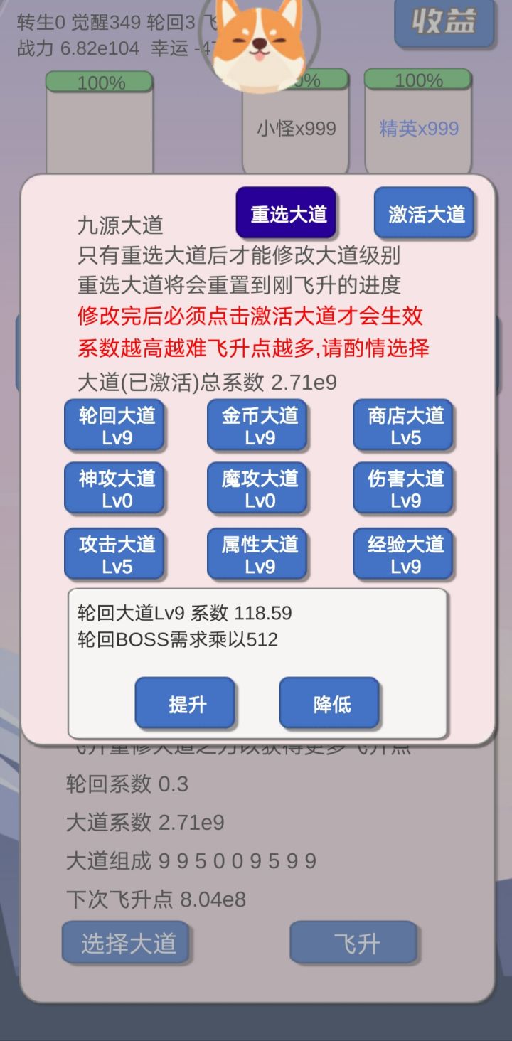 简要攻略:玩了两个号,第一个V10,个人原因内存清理,没了,现在是38天V14,2轮飞升的菜鸟,玩得还是比较粗放的,也不是什么游戏高手,对数据也没有很好的理解,但是这个游戏可玩性还是高的,反正对我挺有吸引力,这几天别的游戏都扔一边了,现在我就写一写简要的玩法,如果有不对的地方,敬请指教1.1转生、觉醒、轮回、飞升。这是四个晋级机制,各有提升,从后到前形成限制条件,比如转生10次才可1觉醒,20次