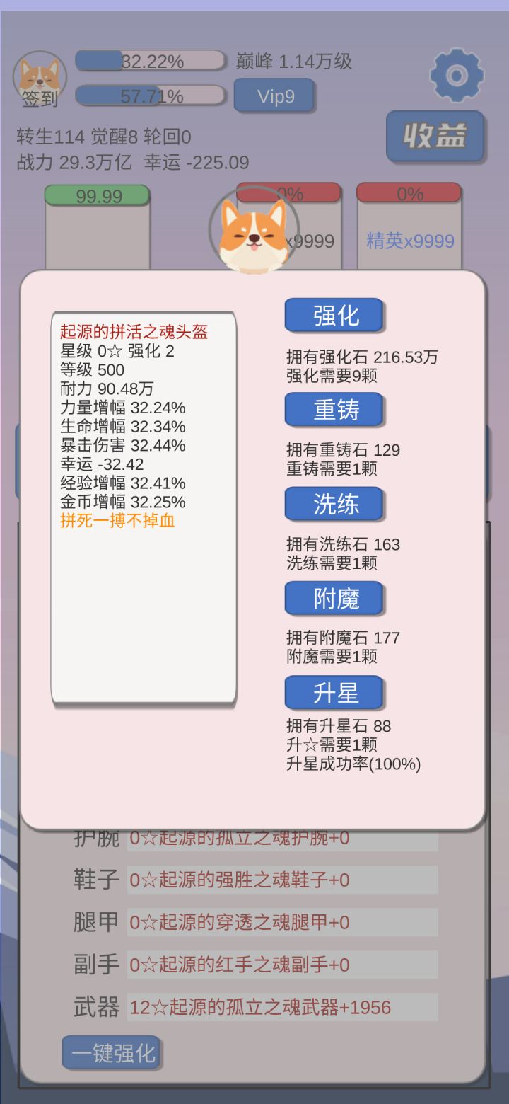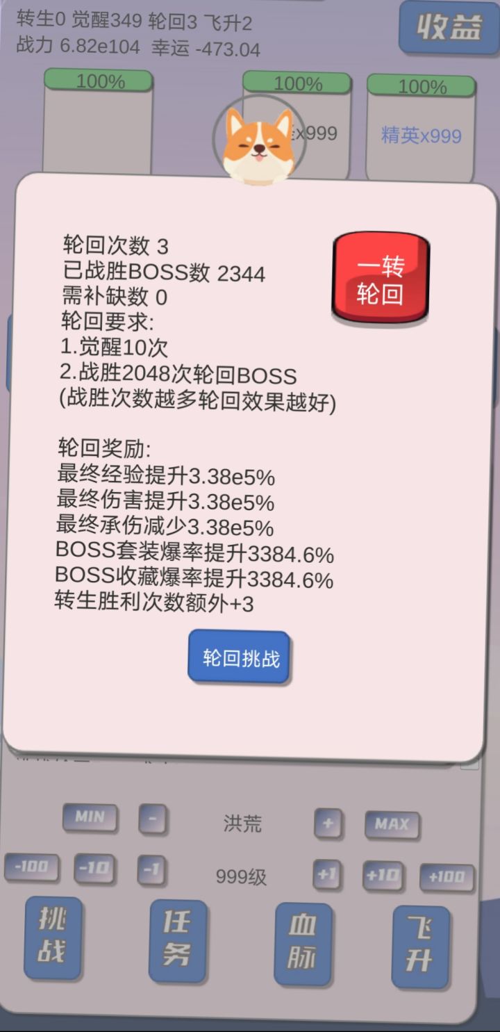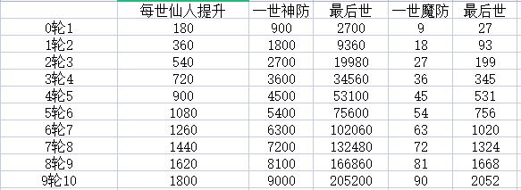 1.05版本轮回仙人数据,猜测,可能与实际不符合😒完美轮回是要打轮回次数乘11个仙人,比如你2轮,就要打22个仙人.红色按钮会显示完美轮回就可以轮回了.