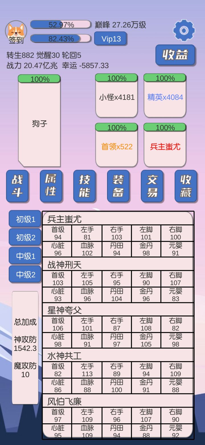 玩一个月了 谈谈自己的看法,下图是刚觉醒,装备属性都没有,不要在意细节。最重要1点,就是神攻,其他都是浮云,一轮回以后,一周时间13觉,期间全卡神功上了,神功破不了觉醒boss防御,你拿啥都不好使。最后一句话,神功,神功,神功