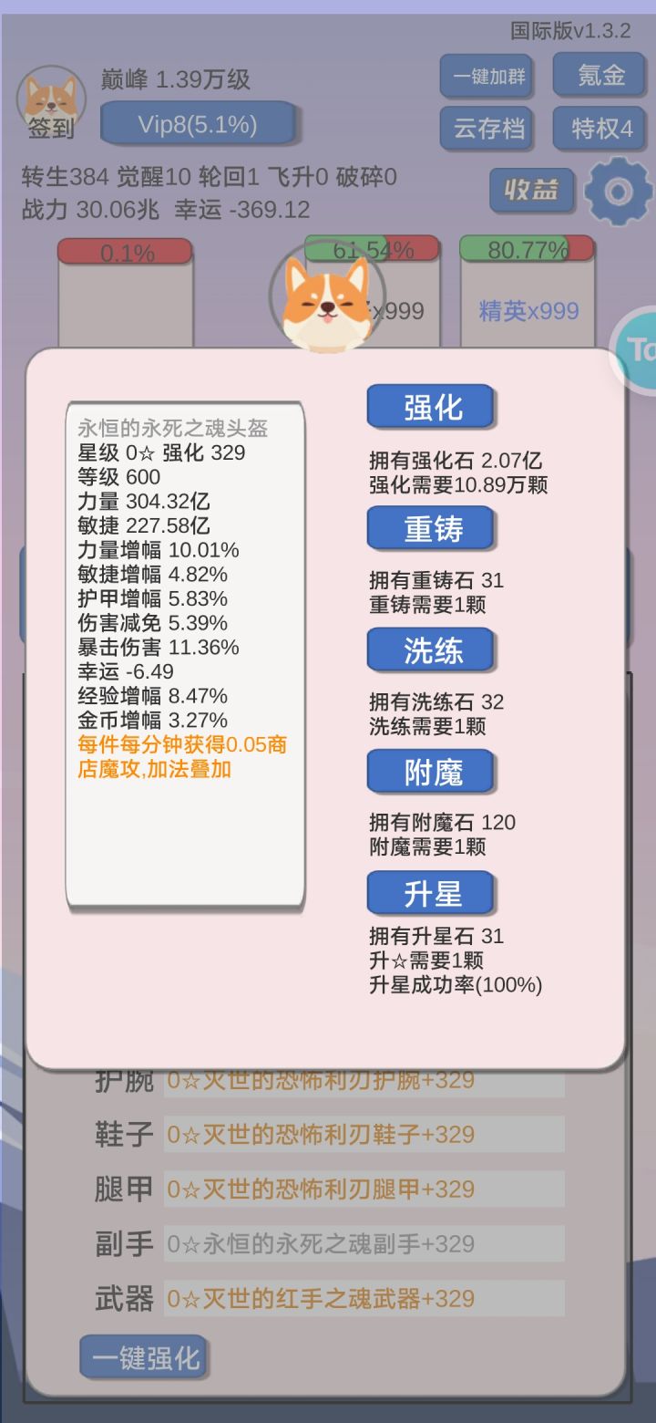 三:计算力量属性加攻击之合再乘以900%(降维的力量最高,思维的攻击最高,两两所以相加再乘以降维效果900%)