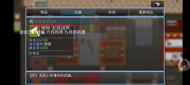 铁匠铺回收除(雪狼皮衣、广告武器、魏国武器)以外所有蓝色武器防具