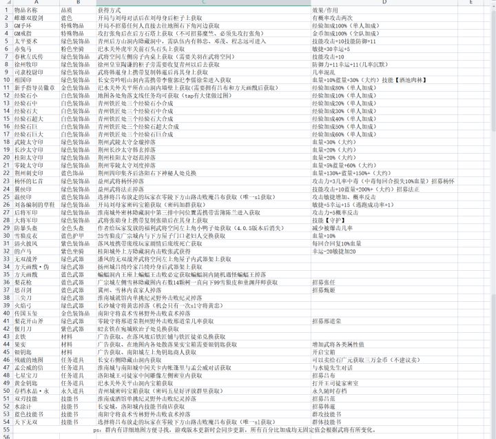 根据目前版本一些不太好获取的道具做了一份汇总,可能不太全面望见谅。