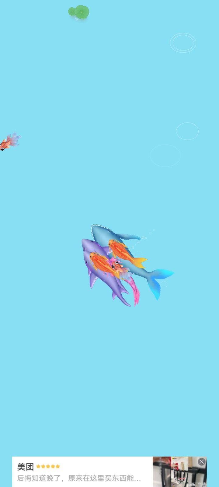 离大鱼还有一定距离就被吃…请问这是游戏还是看完视频之后的奖励了?广告都关不了
