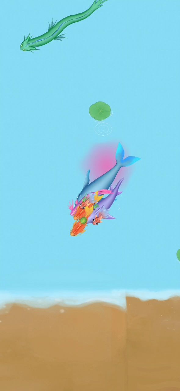 昨天也是啊,玩到蓝色的鱼的时候,它就卡住了。今天还这样,我什么时候能看见神龙啊?
