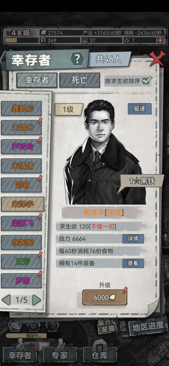 目前这个游戏现在模式很简单救援解锁区域挂机升级等差不多20级你大概就拥有所有基本设施这时候你就得开始看广告了,看见红色质量的人拉高求生欲救援收起来除去初始几个后面你就是不断给后面的这些人升:黑铁,青铜,白银……这里就是“最强王者”“战斗室”加战斗力去“巡逻区域”“避难所的大床”那个生存什么训练你可以无视,全力砸农业农业可以压缩饼干升级然后就是尸潮了,一般控制90%以上吧后面