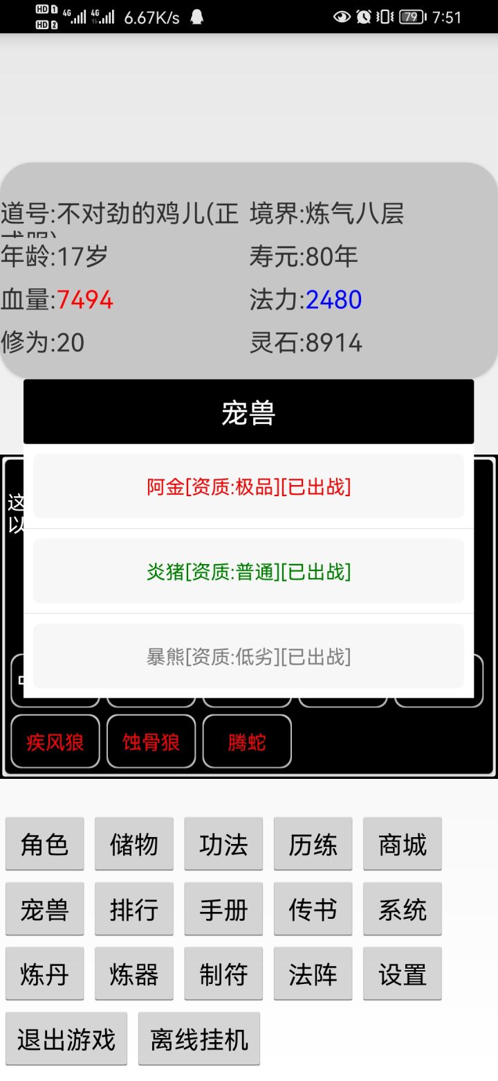 提醒一下跟我一样的萌新,不知道四维是什么的四维:体质,真元,身法,肉身