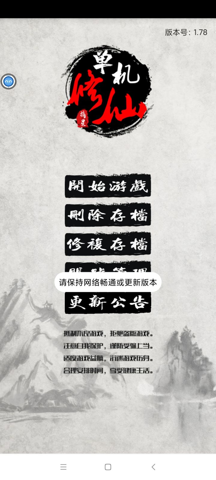咋一进去就提示保持网络畅通要更新然后闪退