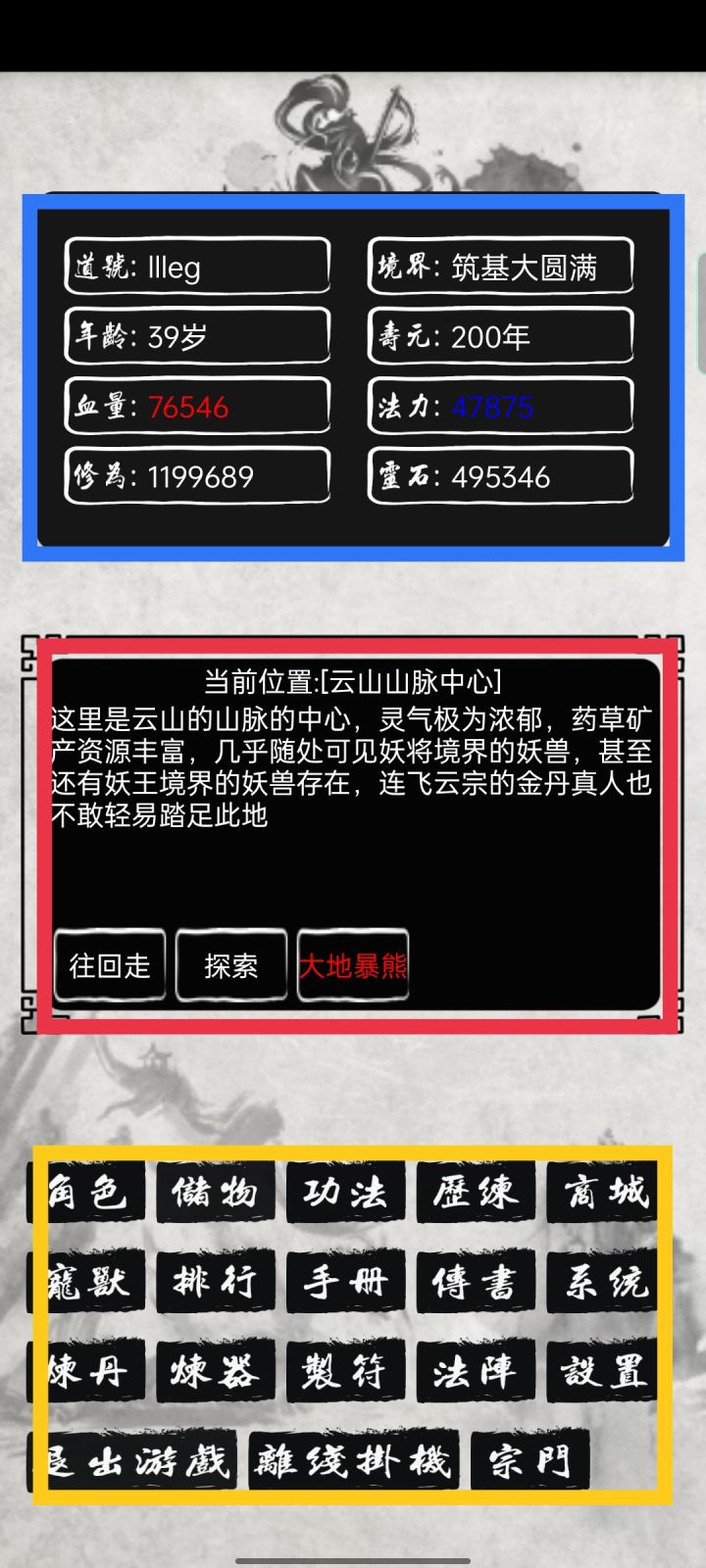 希望能修改一下ui 游戏内三段式分布没啥问题,但问题是三段式没有分出主次关系,上方的状态栏非常冗余,且影响游戏体验,长显内容是无法交互且内容无关紧要,我觉得非常有必要精简删除。 而中间的主体内容的交互模块却非常小,以至于出现了弹窗显示经常挡住交互内容,如图一图二,次数多了非常心累,体验非常不好 所以,建议压缩上方长显内容,只保留道号境界修为灵石这四项会关注的内容,其他内容显示在二级页面的属性内就行了,腾出空间给中间主体部分,最好是吧获得物品的弹窗,变成固定的滚动窗,相互不遮挡
