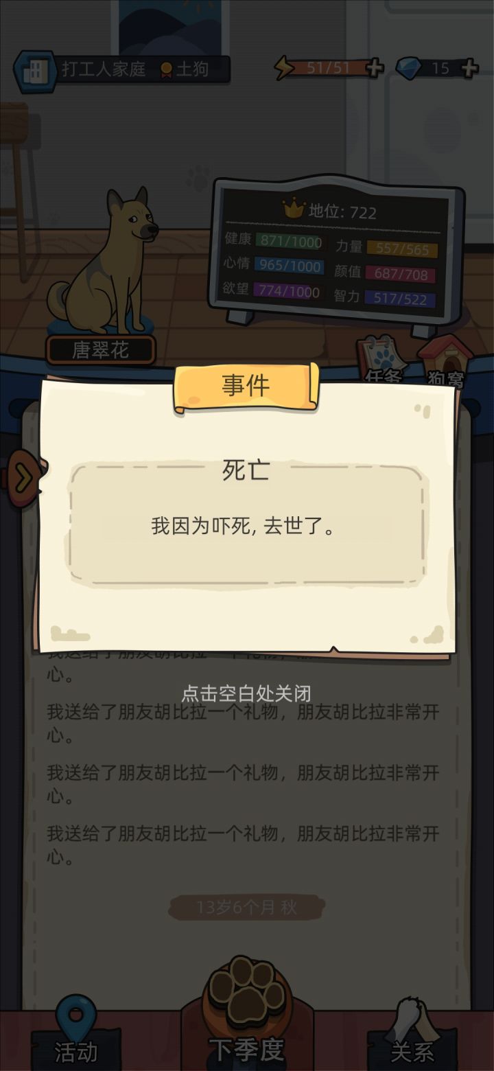 。。。咋滴,诈尸?😅另外还有个bug要说下,就是我被小偷刀s了,那时候还没后代,吓得我重进了一下,虽然上面还说我s了,但我照样能跟个活狗一样做事😊