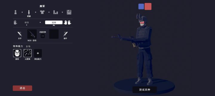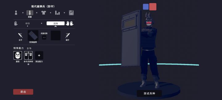 #自定义兵种大赛 冲锋盾牌兵:适用于冲锋的场景,血量厚,适合前排抗伤防守盾牌兵:与冲锋盾牌兵无异,区别是适合守点机枪兵:极致的输出,射程中等炮兵:伤害爆炸,aoe群体伤害,适用于破点狙击手:射程远,伤害高,适用于击杀敌方关键人物美军:均衡的调配,有个体伤害,有群体伤害,不知道出什么兵首选他
