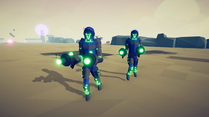 #全面憨憨战争模拟器 该模组改编自手机游戏《Army Battle Simulator》,兼具了平衡性和可玩性,因此使用该派系挑战原版战役相当合适。《军队战役》也将加紧制作并发布至端游创意工坊。军队侦察旋翼军队侦察旋翼从空中发射密集的爆能弹。韧性:中等花费:1650速度:非常快射程:较近特点:飞行与悬停、闪避抛射物军队奇袭改造人军队奇袭改造人跳入敌阵冲撞敌人,接着发射密集的连锁