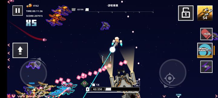 其实不需要卡什么bug,下面的能量条既是你的血量,也是你放技能的筹码(我猜的),武器带那种自带黑洞的,主动技能带导弹,再带一个有概率将主动技能生效两次的蓝色技能,这样触发黑洞吸人就拿大范围杀伤武器打,充能量条,高于一半能量无脑点导弹技能,手速越快导弹越多233,只要黑洞存在你就可以无限放导弹,我这波运气太好,武器的黑洞被动一直触发,小鬼控死,2233333333