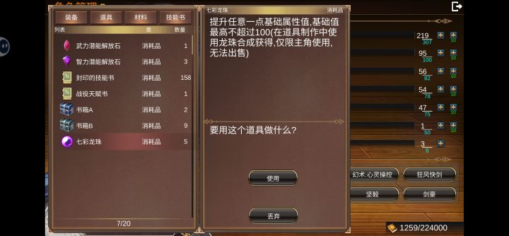 你们使用七彩龙珠能提高属性吗?为啥我在这个界面使用一点都没提高啊?是不是只有战役模式能生效