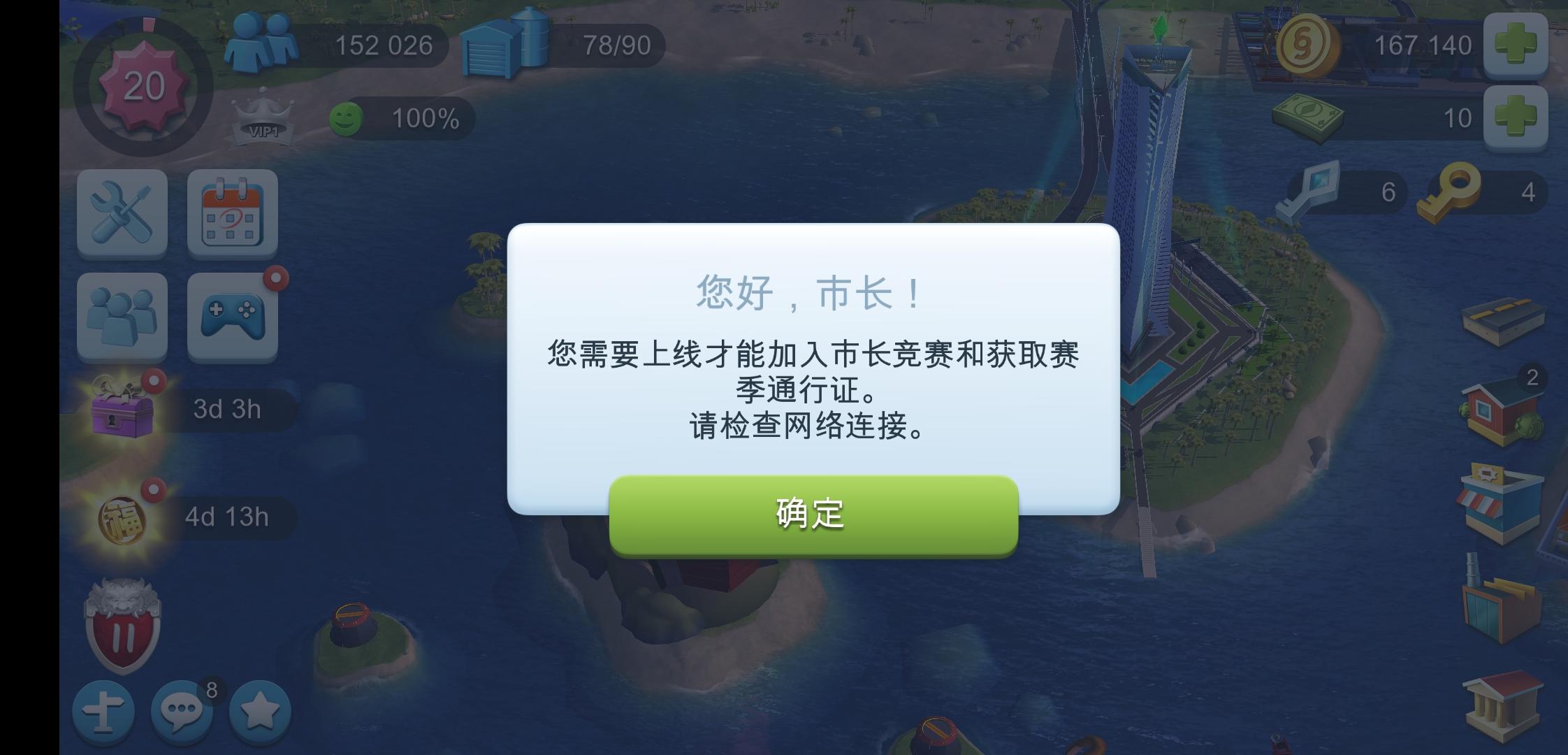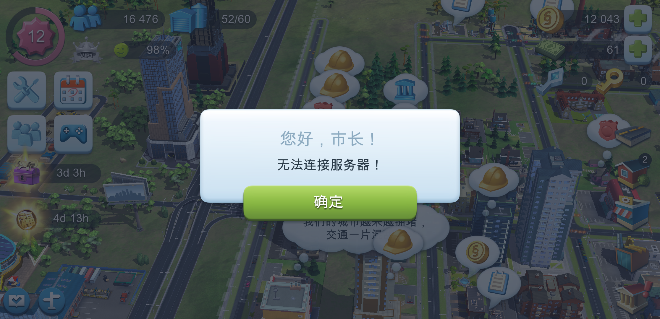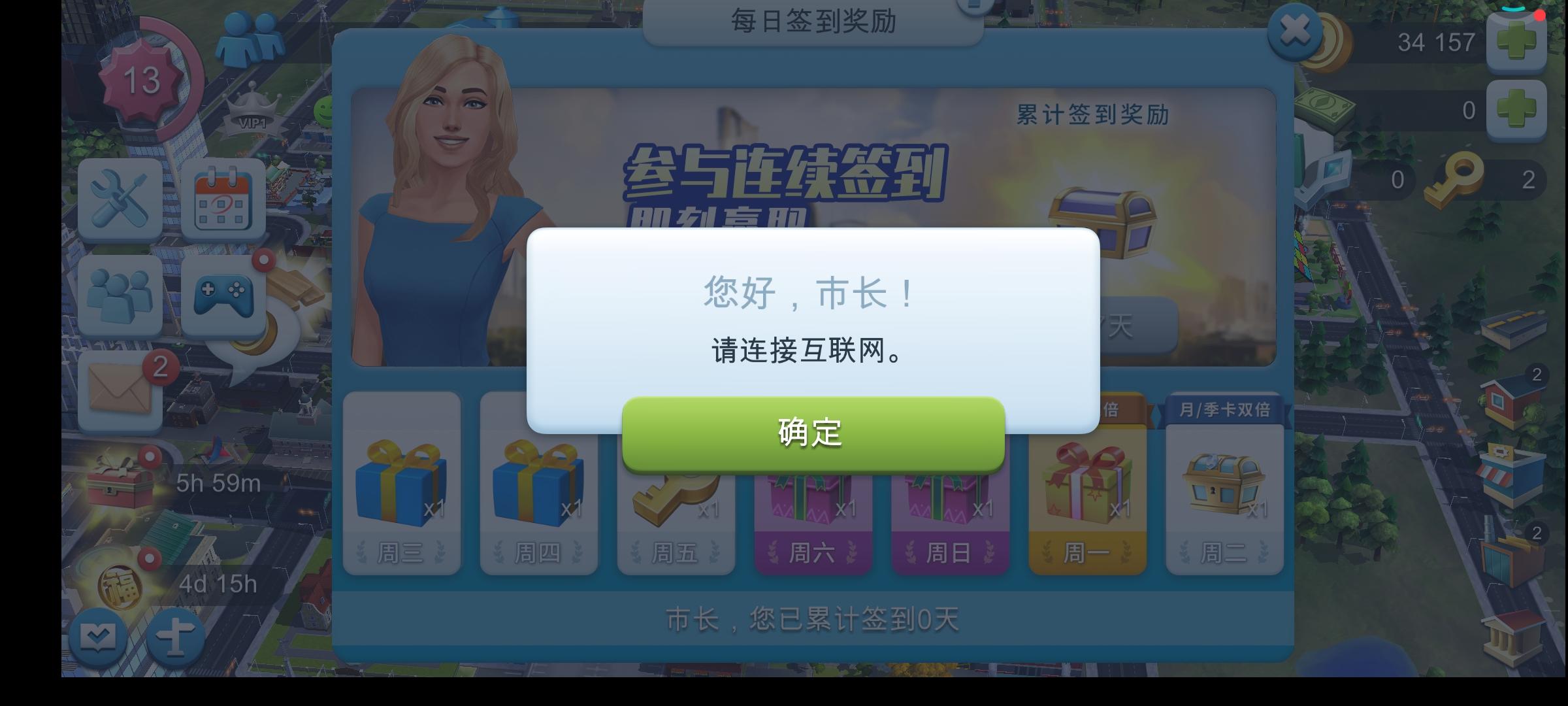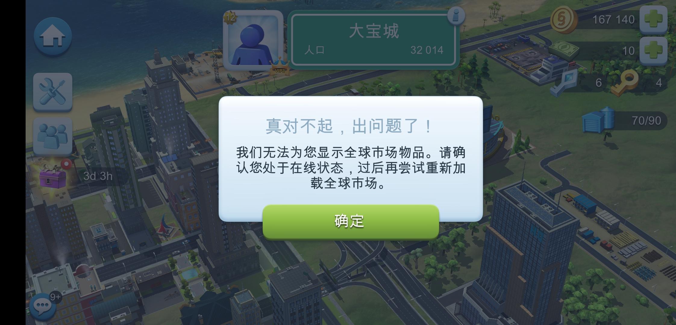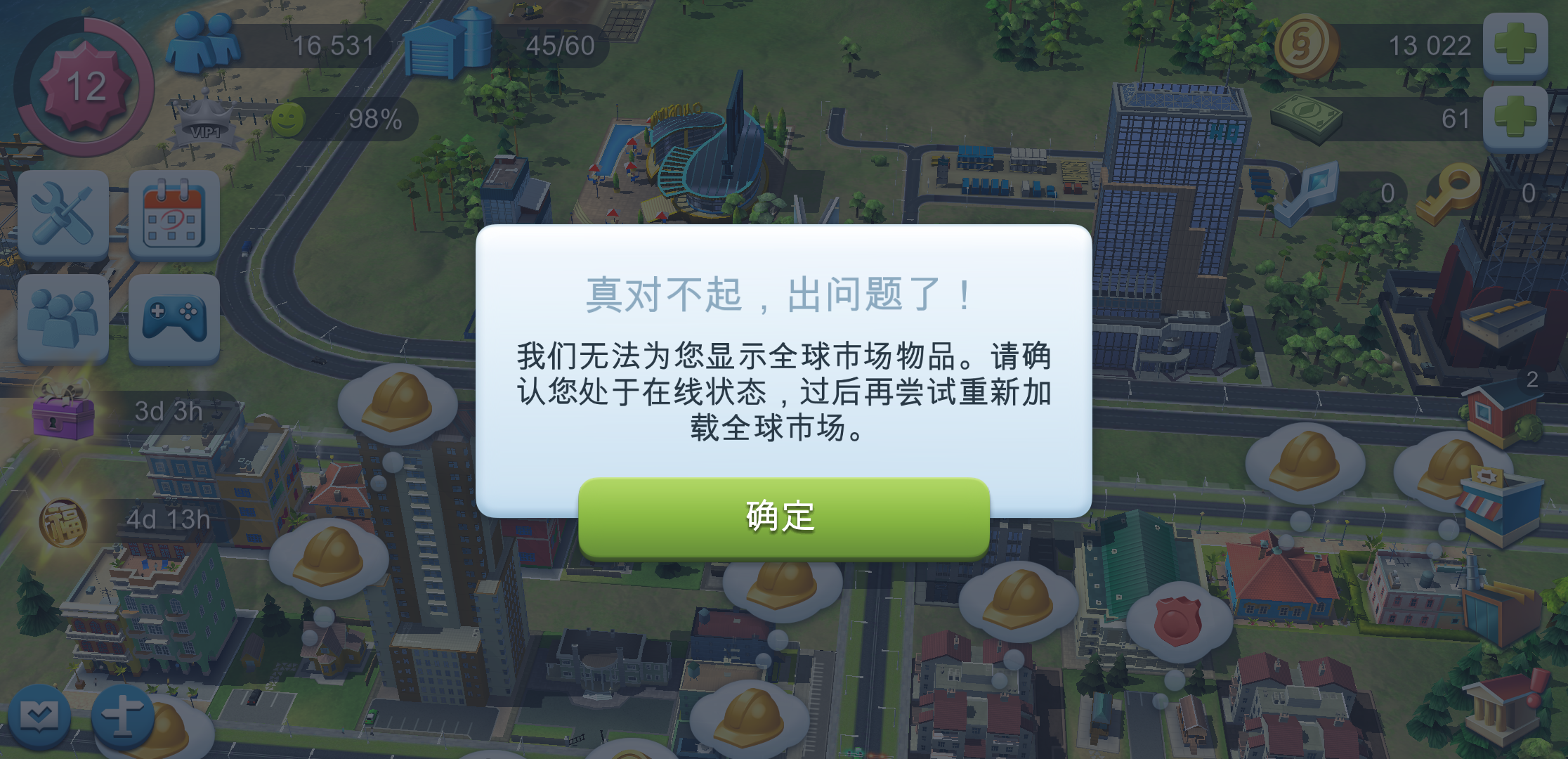 官方请快些修复!!!已经两天了,每次签到签到那里标着已领取,实际上领个毛线!我的奖励励啊!模拟市民的气泡点不了,贸易中心用不了,交易站用不了。拜托官方快些修复。