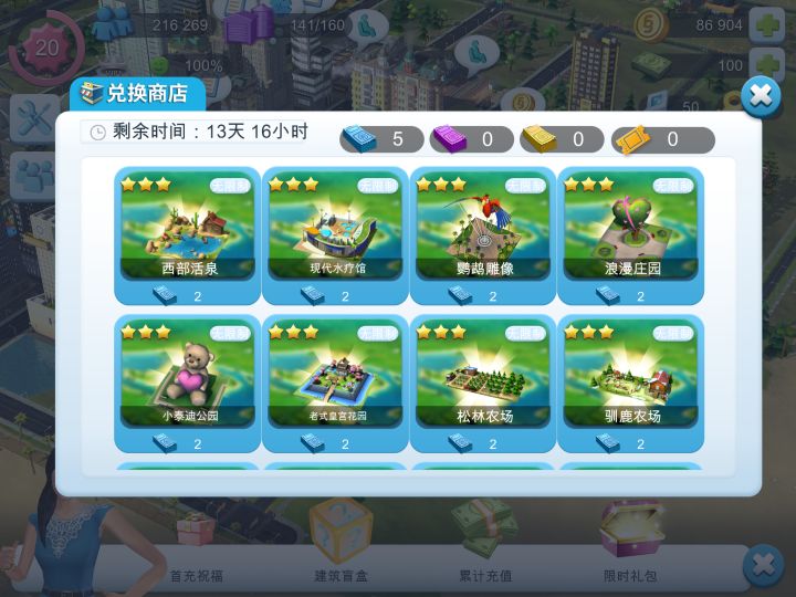 零氪新手,这个蓝色票子要兑哪个性价比比较高啊?这个也看不到哪个建筑教程百分之多少人口,有人知道吗? #模拟城市之我是市长 #噗噜噜实验室 @游戏懂哥