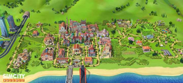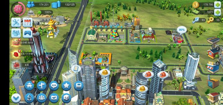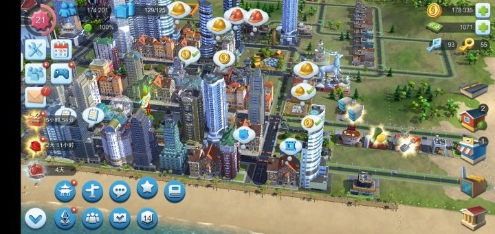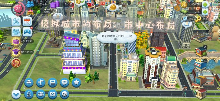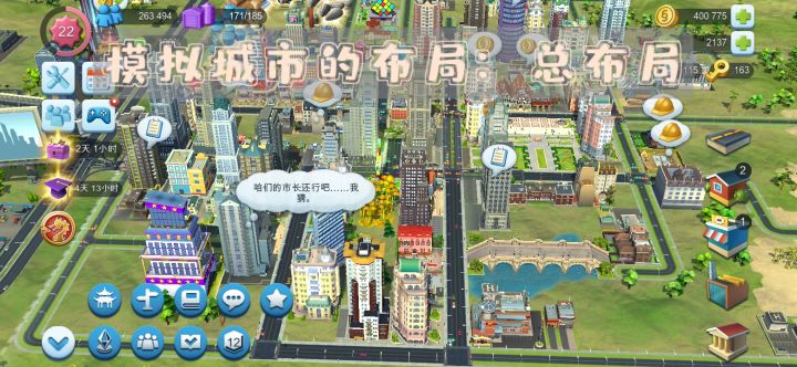 我玩了将近两个月的《模拟城市:我是市长》后,该城市的布局已经从原来的一座小县城转变成一座大城市了,说明我发展这座城市已经是很尽力的了。不过我退游后,我玩《模拟城市:我是市长》的机会已经大大地减少了,这还不是因为来自各个街道城管来管摊子,所以我才会立刻卸载掉这款游戏。1️⃣城市的总布局当我再次连升九级后,这次的城市布局的已经成为了一道亮丽的风景线,因为我在图1的右下角己经建成一座大桥,以便更多的